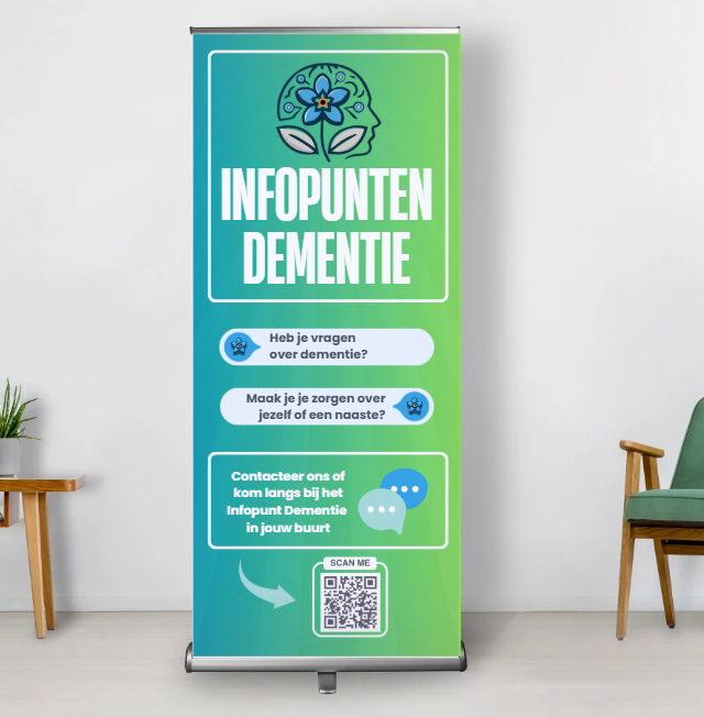 Roll-up banner - uit te lenen aan de Infopunten Dementie. Let wel: Reserveer de banner minstens een week voor je event! |